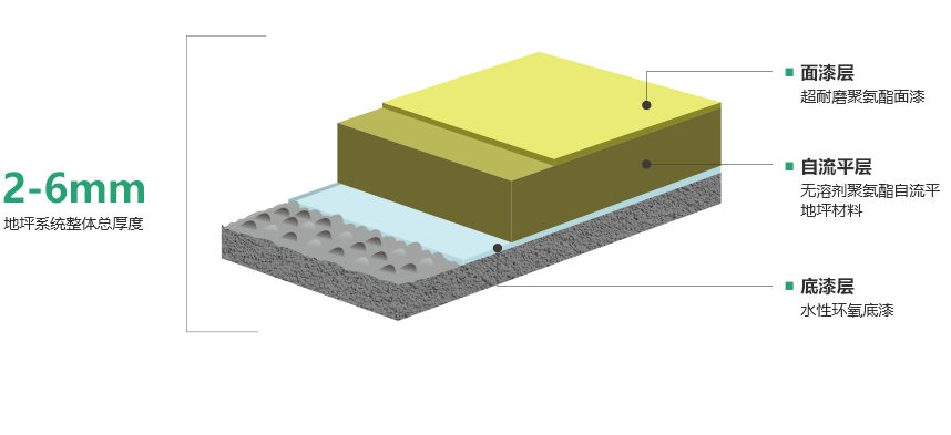 具有優異的物理性能和耐介質性能且生命周期長,伸長率是環氧地坪材料的5-10倍,對混凝土具有優異的裂縫追隨性,能有效防止裂紋及開裂。